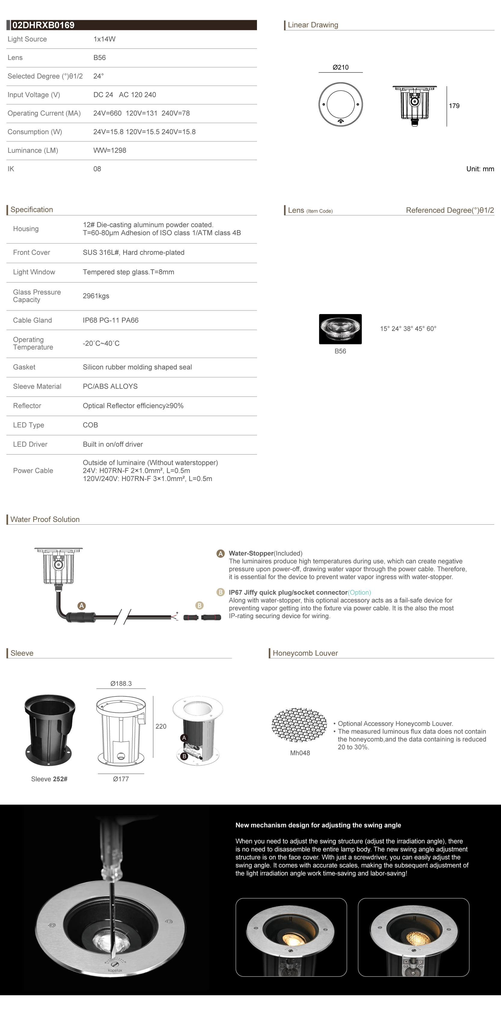 Tiltable Directions Linear Inground Light