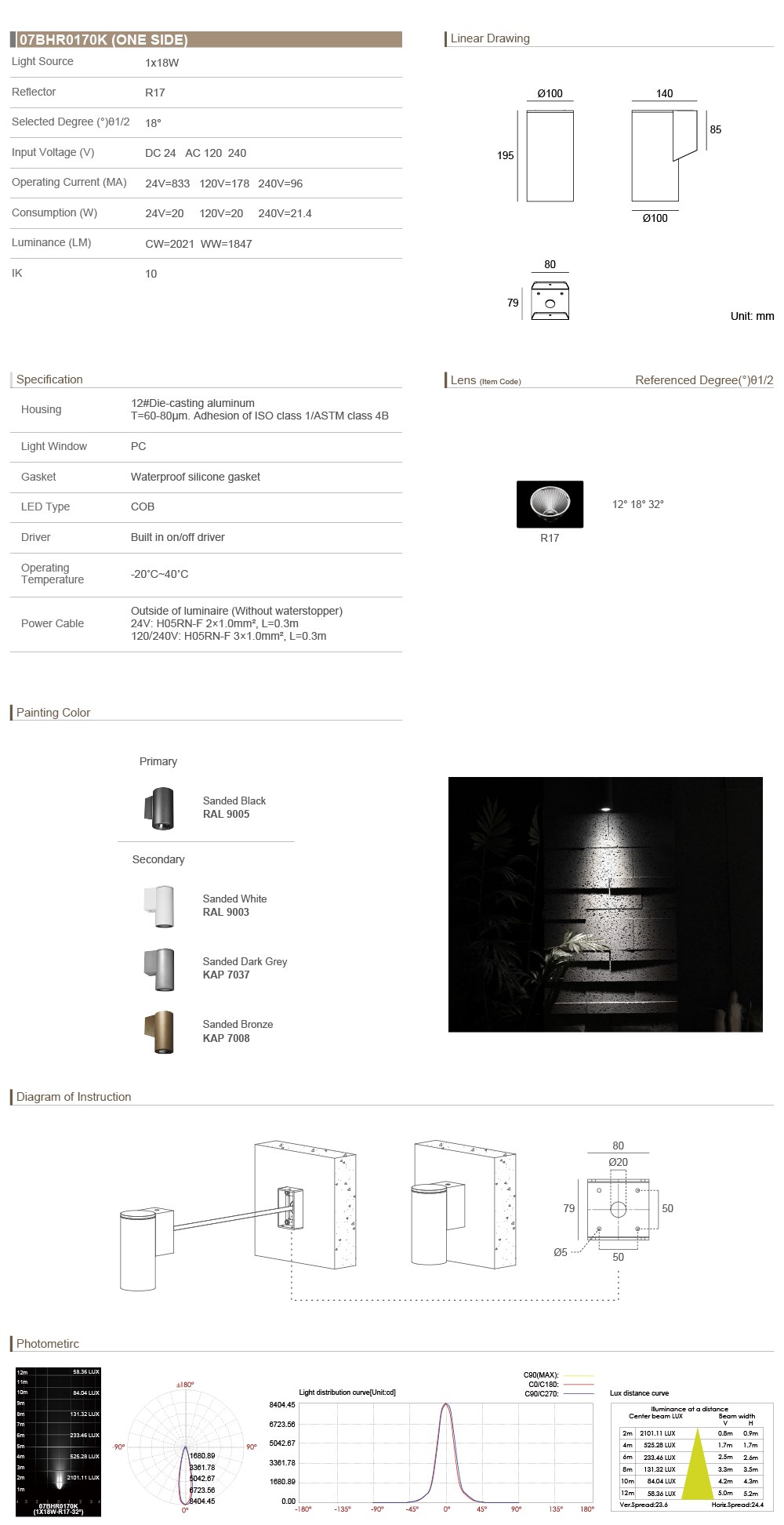 07BHR0170K (One Side) (1×18W)